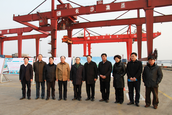 2月10日下午,交通運輸部黨組副書記、副部長翁孟勇一行,在省交通運輸廳黨組書記、廳長賀仁雨,長沙市委副書記、市長張劍飛,市政府副市長何寄華,市政府秘書長、辦公廳主任唐志浩,市政府副秘書長嚴鳳枝,市交通運輸局黨委書記朱東鐵,局長劉明理,副局長姚仲權、陳湘,開福區區委書記張迎春,區長凌勤杰等領導陪同下,來到長沙新港考察調研。湖南長沙新港有限責任公司董事長、三期工程建設指揮部指揮長石道國,董事、常務副總經理唐忠良,董事趙赤書,副總經理張韜,長沙集星集裝箱碼頭有限公司副總經理辛華,總經理助理周勇接待。 在長沙新港集裝箱碼頭上,三期工程建設指揮部副指揮長、新港公司副總經理張韜介紹了長沙新港一、二期工程運營情況,匯報了三期工程建設規模及建設情況。翁孟勇副部長強調:長沙新港變化一次比一次大,當前要借助湖南加大水運發展力度的有利契機,加快樞紐、港口和湘江2000噸級航道提升建設,更好地服務經濟社會和航運的持續發展。 |