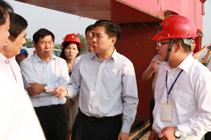 10月14日下午,國家發改委副主任徐憲平,交通運輸部綜合規劃司副司長蘇杰,國家發改委基礎產業司司長黃民,國家發改委規劃司副司長袁喜祿等領導一行,在湖南省人民政府副省長陳肇雄,長沙市領導余合泉等領導的陪同下就長江經濟帶建設來長沙新港調研。湖南長沙新港有限責任公司董事長、總經理、黨委副書記唐忠良,董事、副總經理張韜,董事、長沙集星集裝箱碼頭有限公司副總經理辛華等接待。 在長沙新港集裝箱碼頭上,集星公司副總經理辛華首先向徐憲平副主任一行介紹了長沙新港一、二期碼頭規模、貨源、業務、運營等情況,著重介紹了湘江長沙綜合樞紐試通航初期和長沙海事為長沙新港開辟樞紐“綠色通道”后,碼頭業務及生產情況對比。辛華介紹說:“樞紐‘綠色通道’開辟以來,船舶進出閘通過艘次提高26.84%;集裝箱吞吐量達46412標箱,比‘綠色通道’開辟之前提高86.28%。”隨后,新港公司副總經理張韜向徐憲平副主任一行介紹了三期工程規劃、建成規模、建設進展等情況。 徐憲平副主任指出,湖南這些年發展迅速,強大的水運網絡給予了湖南對外經濟發展強大的支持。長沙新港碼頭地理位置優越,硬件設施完備,足夠滿足碼頭日常生產需求;港口規劃及管理科學規范,集裝箱碼頭管理系統十分先進;碼頭生產井然有序,一派繁忙景象。徐憲平副主任肯定了長沙新港這幾年建設、經營所取得的成績并強調,三期建成后,港口功能將更加完善,有望成為國內一流的現代化內河港口,長沙新港前景可觀。 |