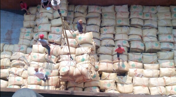 2014年10月15日,一艘名為“皖江貨8888號”貨船裝載豆粕運抵長沙新港件雜貨物碼頭。該船貨物是中海糧油湖北武漢新煉油生產廠家針對現在勞動力緊張, 節省人力成本而特意改進裝卸工藝的技術革新項目,即出廠時,就將所有單包裝豆粕全部裝在網絡里,然后再裝船發運,到目的港口卸載時, 只需將網絡集合放入吊鉤便可起吊。 以前,來自長江下游在江陰、南通、張家港等裝運豆粕的船舶運進長沙新港,都是按50—70公斤重一袋的單包裝運輸抵港。裝卸時,裝卸工人要從數米深的船艙里, 靠雙人一組用人力將單包裝豆粕搬抬包、堆碼到網絡中,再起吊裝上汽車。每次只能吊2噸,一個臺班僅能完成裝卸300噸左右。這種傳統裝卸,勞動強度大,效率低,勞動力需求量大。 此次,中海糧油開始試用的改進裝卸工藝,裝卸時,裝卸工只需將4個網絡集合,繩環串掛上 “S”型鉤子,便可輕松完成裝卸。每次能吊3噸,一個臺班能完成裝卸600噸左右,臺班操作量翻2倍以上。網絡由收貨方回籠,可重復使用。改進裝卸工藝后,既省工,又省時,卸船速度加快,徹底告別了人力搬抬包裝貨物的歷史。 據廠家負責人介紹,該工藝仍在研究改進過程中,以后效率將更大,更有利于節約物流成本。 |