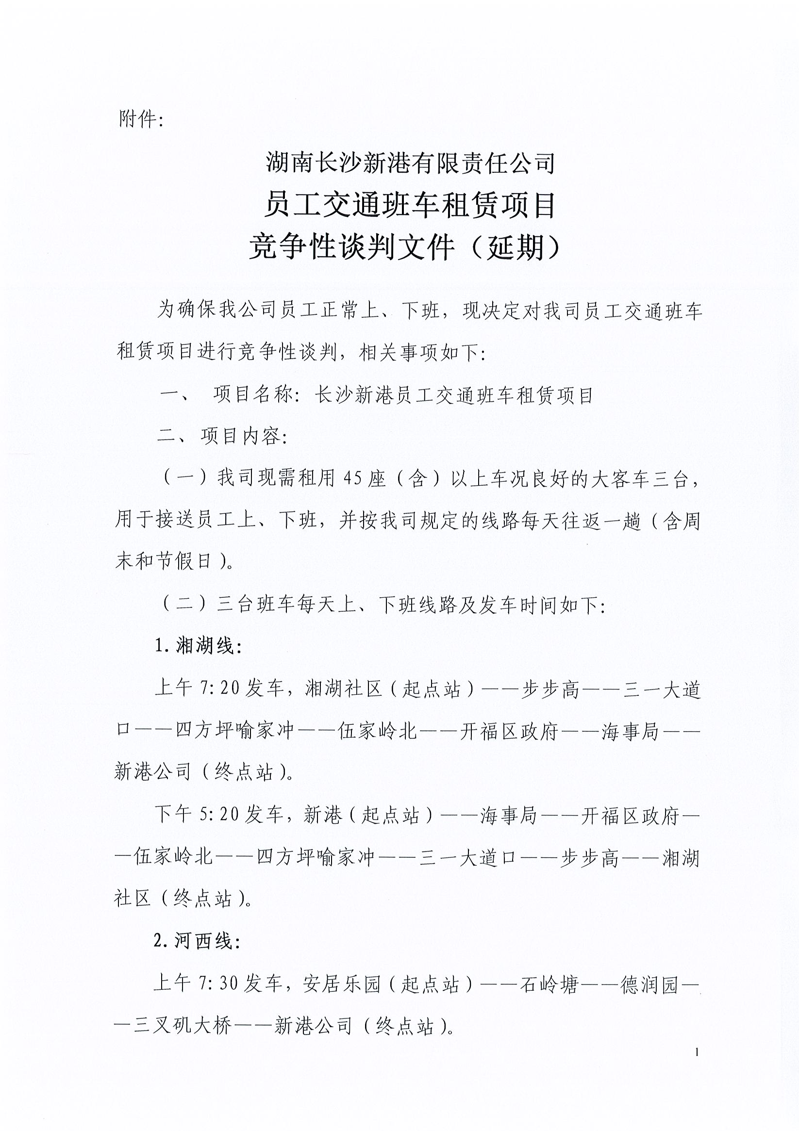 湖南長沙新港有限責任公司 員工交通班車租賃項目競爭性談判邀請公告(延期)