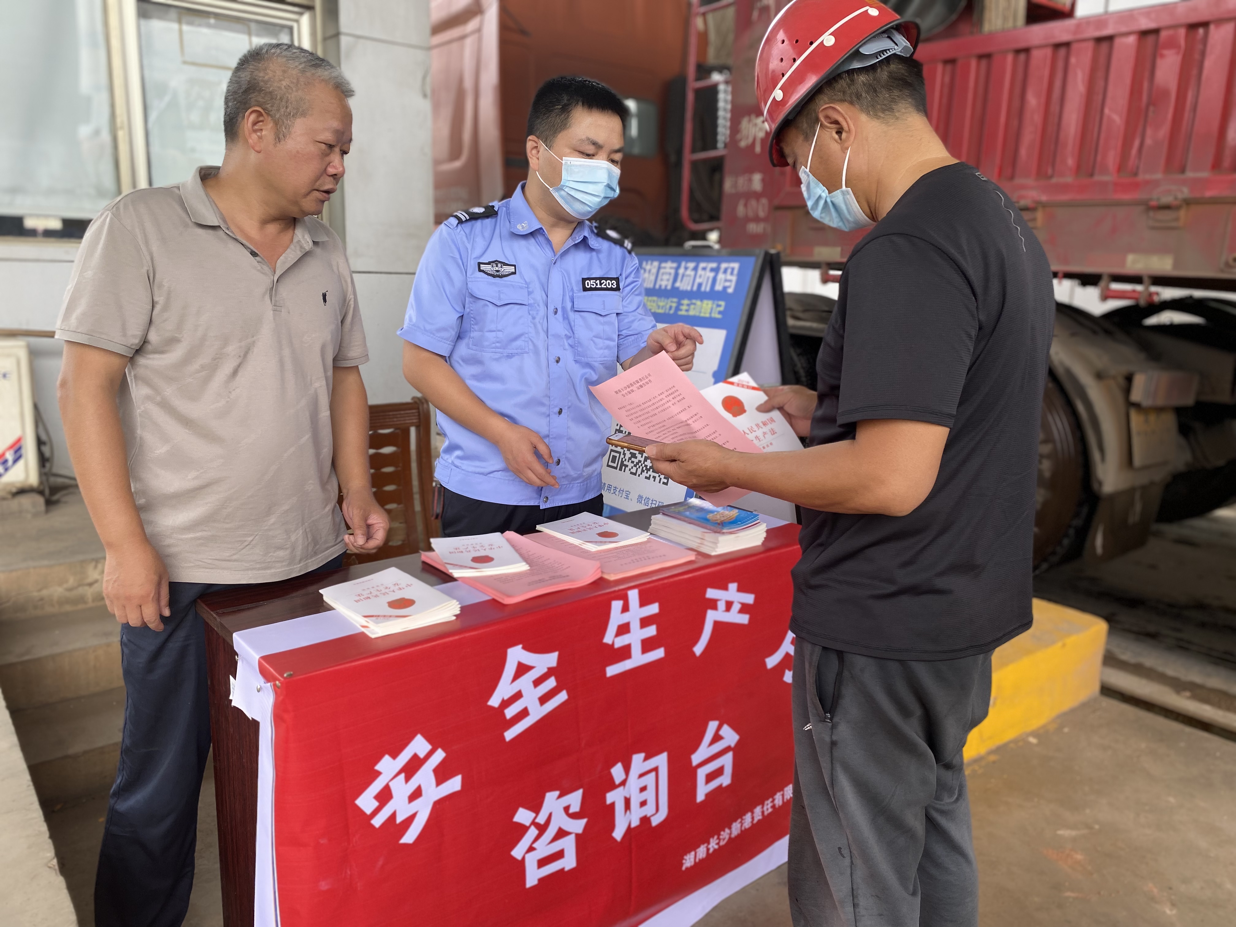 6月16日上午,湖南長沙新港有限責(zé)任公司在港區(qū)入口處開展安全生產(chǎn)月咨詢活動,向入港司機、客戶宣傳安全知識,發(fā)放《安全生產(chǎn)法》、安全知識宣傳折頁、車輛裝卸運輸安全告知書以及入港安全告知書等,營造安全氛圍。