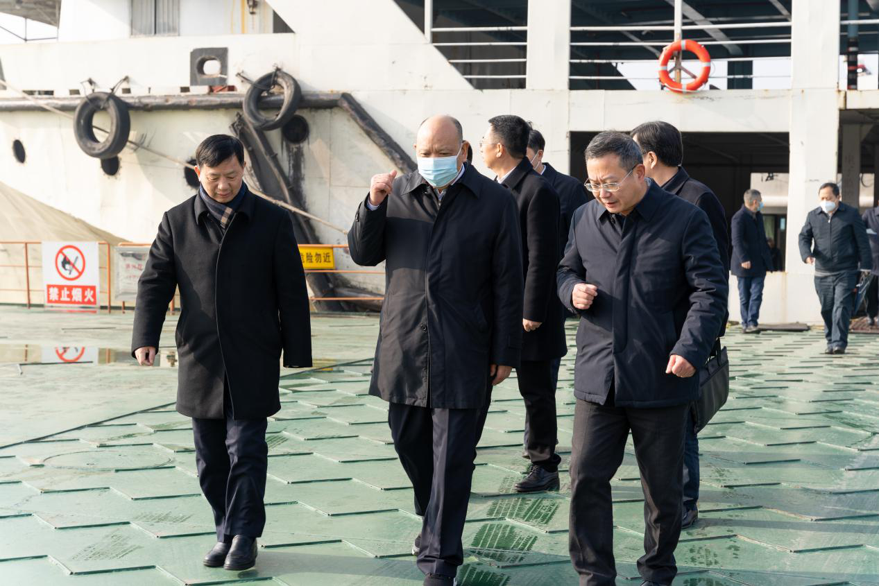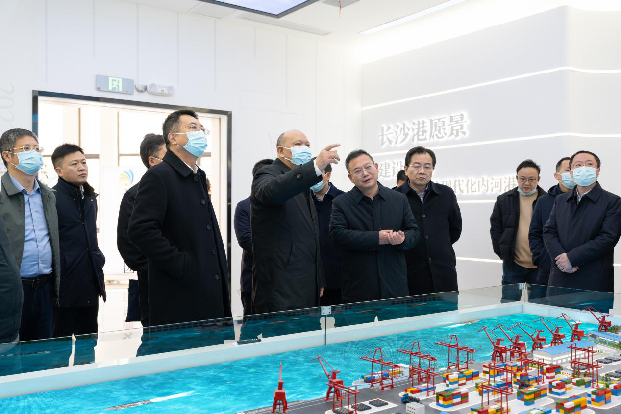 副省長李建中調(diào)研長沙交通集團(tuán)長沙新港    2月15日,副省長李建中調(diào)研湘江航道及港口建設(shè)發(fā)展情況,來到長沙港霞凝港區(qū)實(shí)地考察。長沙交通集團(tuán)黨委書記、董事長李建國,黨委副書記、董事、總經(jīng)理劉俊武在長沙新港陪同考察。 李建中一行乘船從長沙新港滾裝碼頭上岸,先后參觀了長沙新港企業(yè)文化展廳、智能調(diào)度中心,李建中詳細(xì)了解了長沙新港港口建設(shè)、作業(yè)裝卸能力、智慧港口建設(shè)等情況。 李建中指出,要全面貫徹落實(shí)黨的二十大精神和省委、省政府決策部署,落實(shí)“統(tǒng)一平臺、統(tǒng)分結(jié)合,水港協(xié)調(diào)、港產(chǎn)聯(lián)動,市場為主、行政推動”的發(fā)展方向,做到市場拓展與港口運(yùn)行“兩手抓”,打造湖南區(qū)域港口統(tǒng)一品牌,加快推動港口高質(zhì)量發(fā)展。 李建中強(qiáng)調(diào),推進(jìn)全省港口集約化發(fā)展,加大對湘、資、沅、澧“四水”千噸級碼頭整合力度,形成規(guī)模效應(yīng);優(yōu)化港口發(fā)展資源配置,為港口預(yù)留發(fā)展空間;發(fā)揮多式聯(lián)運(yùn)優(yōu)勢,形成港區(qū)優(yōu)勢互補(bǔ)、公鐵水高效聯(lián)運(yùn)、產(chǎn)業(yè)無縫銜接的港口發(fā)展體系;做好臨港經(jīng)濟(jì)文章,帶動相關(guān)產(chǎn)業(yè),支持優(yōu)勢產(chǎn)業(yè),積極引導(dǎo)產(chǎn)業(yè)臨港聚集;切實(shí)抓好安全生產(chǎn)和生態(tài)環(huán)境保護(hù),提升港口安全發(fā)展、綠色發(fā)展水平。 |