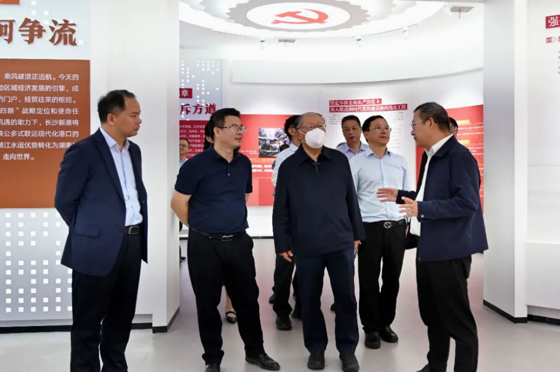 10月31日,原交通部部長、交通運(yùn)輸部調(diào)研組專家委員會主任黃鎮(zhèn)東率《中國港口史》編撰組一行調(diào)研長交集團(tuán)長沙新港。湖南省交通運(yùn)輸廳黨組成員、副廳長周自榮,長沙市交通局黨組書記、局長喻志軍,長交集團(tuán)黨委委員、監(jiān)事會主席羅許全,新港公司黨委副書記、董事、總經(jīng)理辛華參加調(diào)研活動。