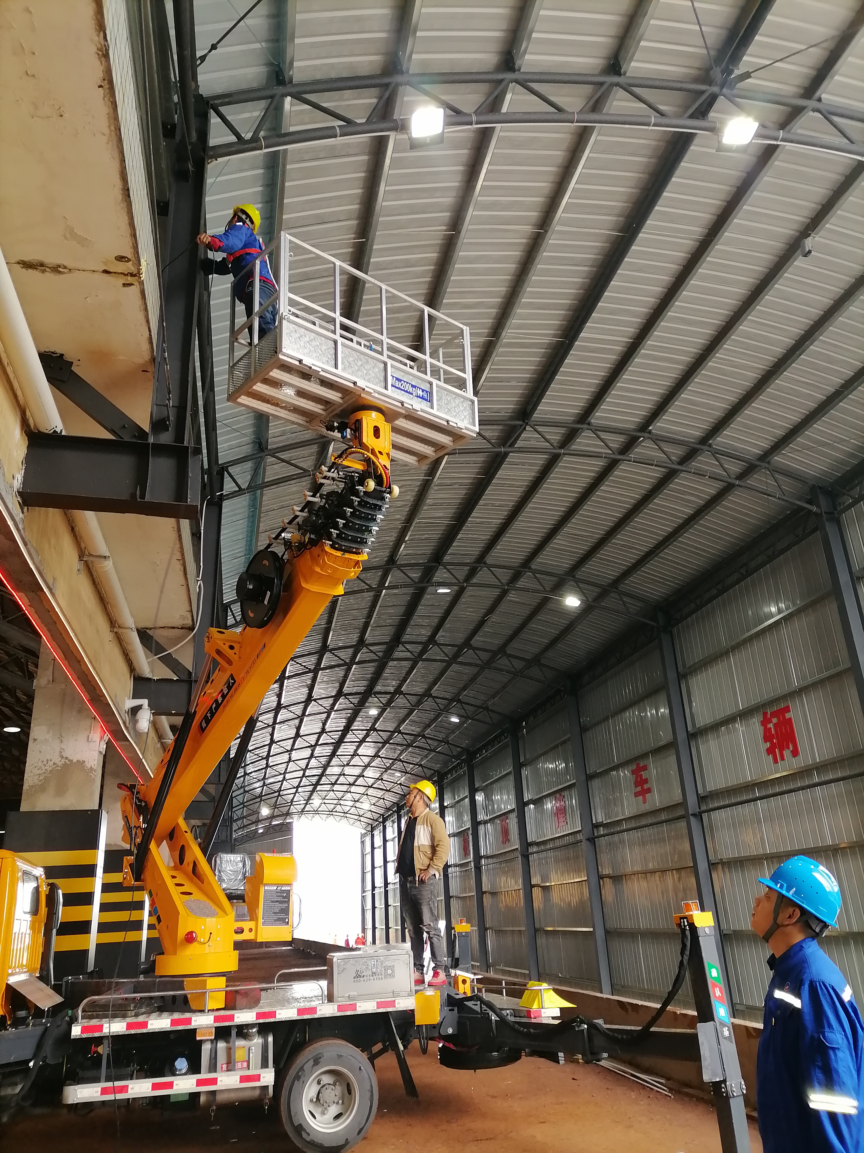 圖為“五一”期間,長沙新港對轉(zhuǎn)運倉庫監(jiān)控進行搶修作業(yè)。 |