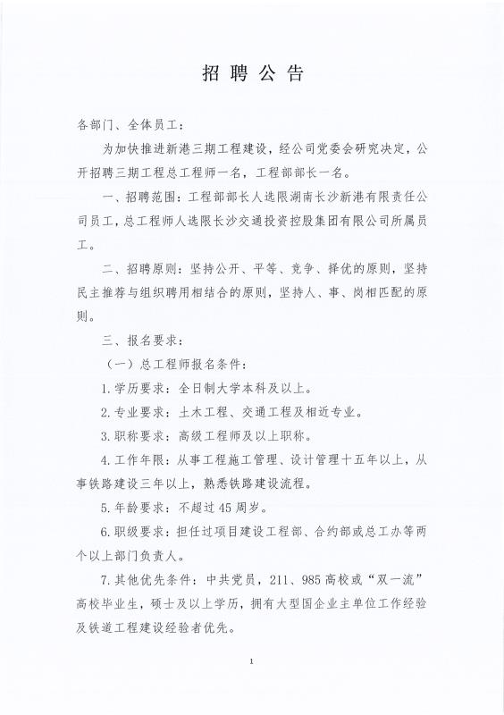 湖南長沙新港有限責任公司招聘公告