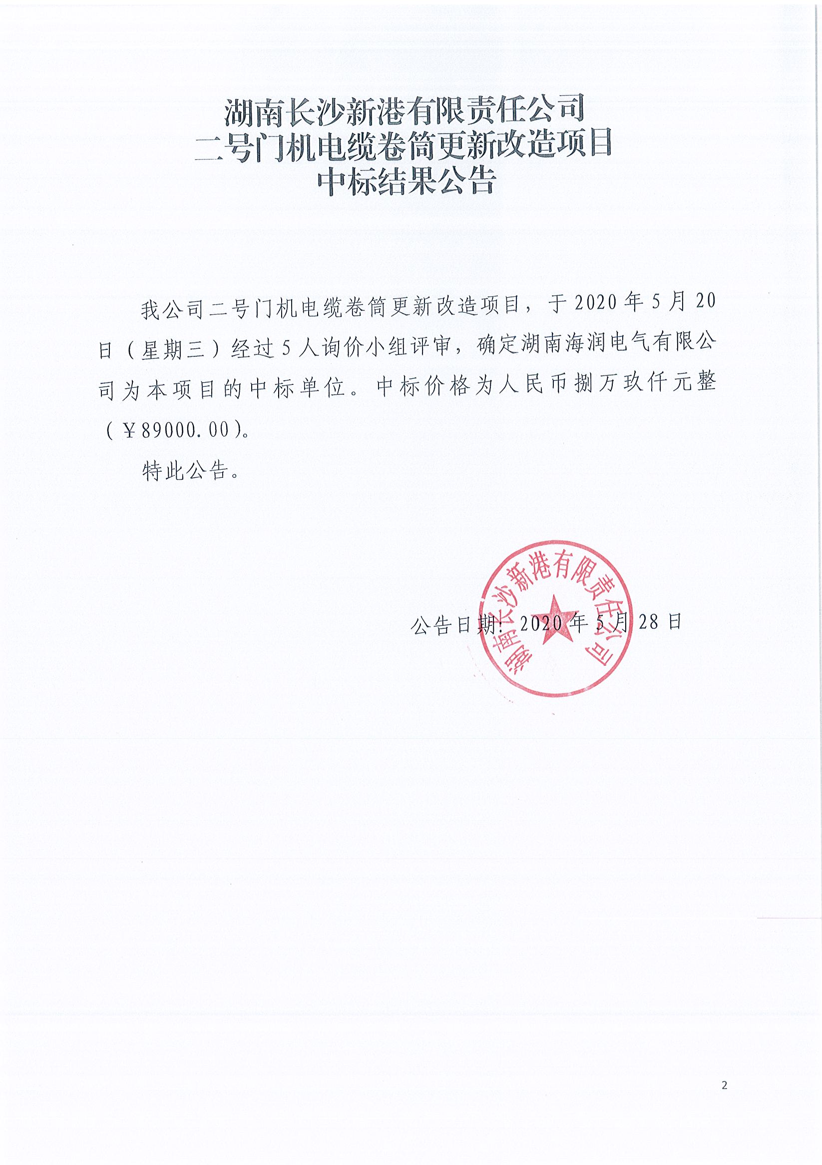 二號門機電纜卷筒更新改造項目《中標結果公告》