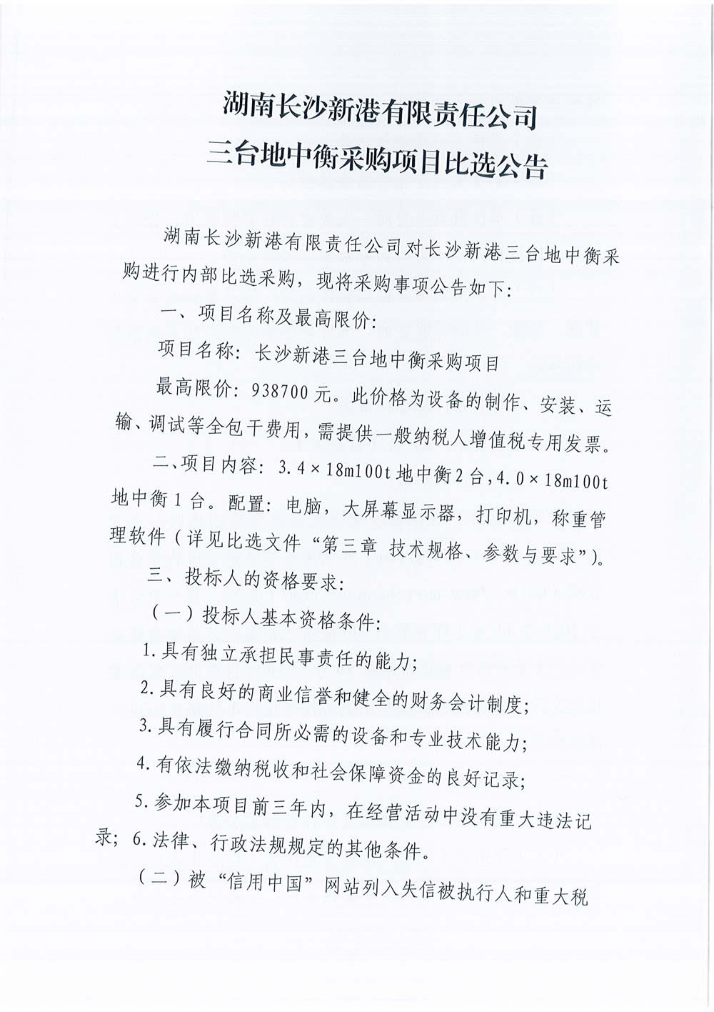 三臺地中衡采購項目比選公告