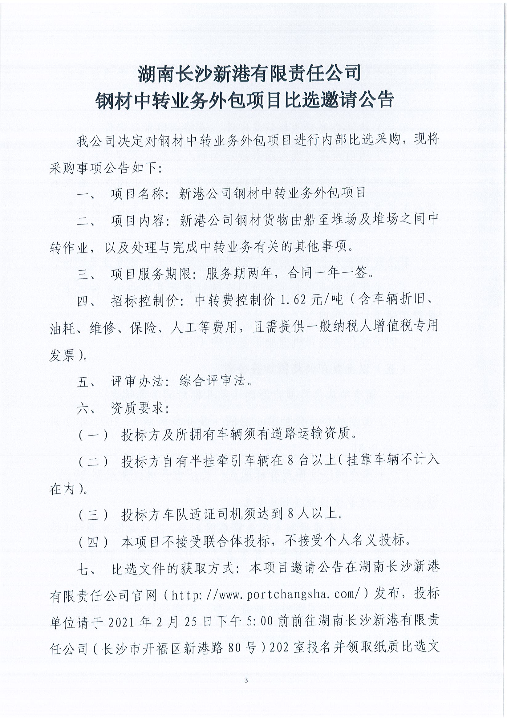 湖南長沙新港有限責任公司鋼材中轉業務外包項目比選邀請公告