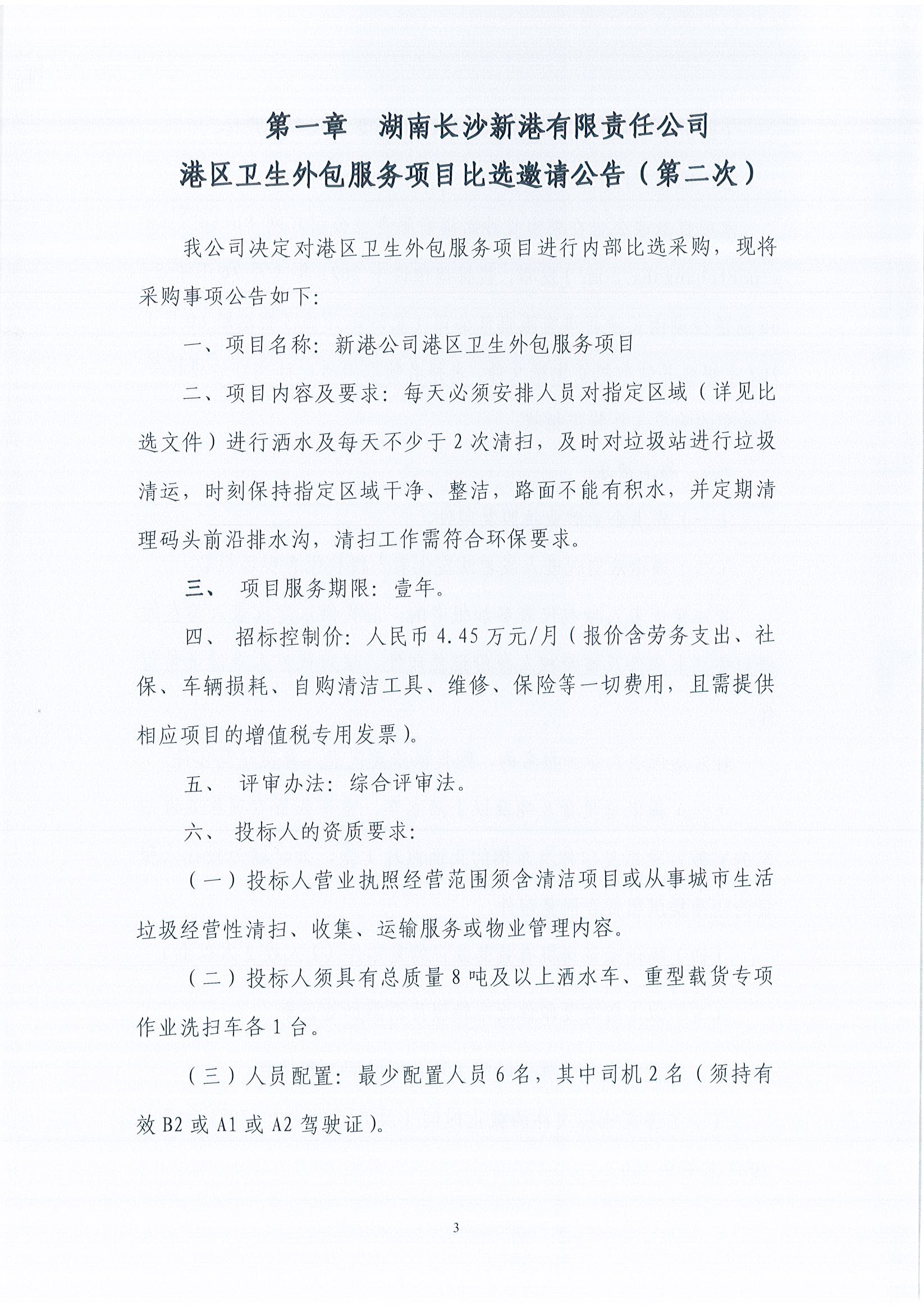 湖南長沙新港有限責任公司港區衛生外包服務項目比選邀請公告(第二次))