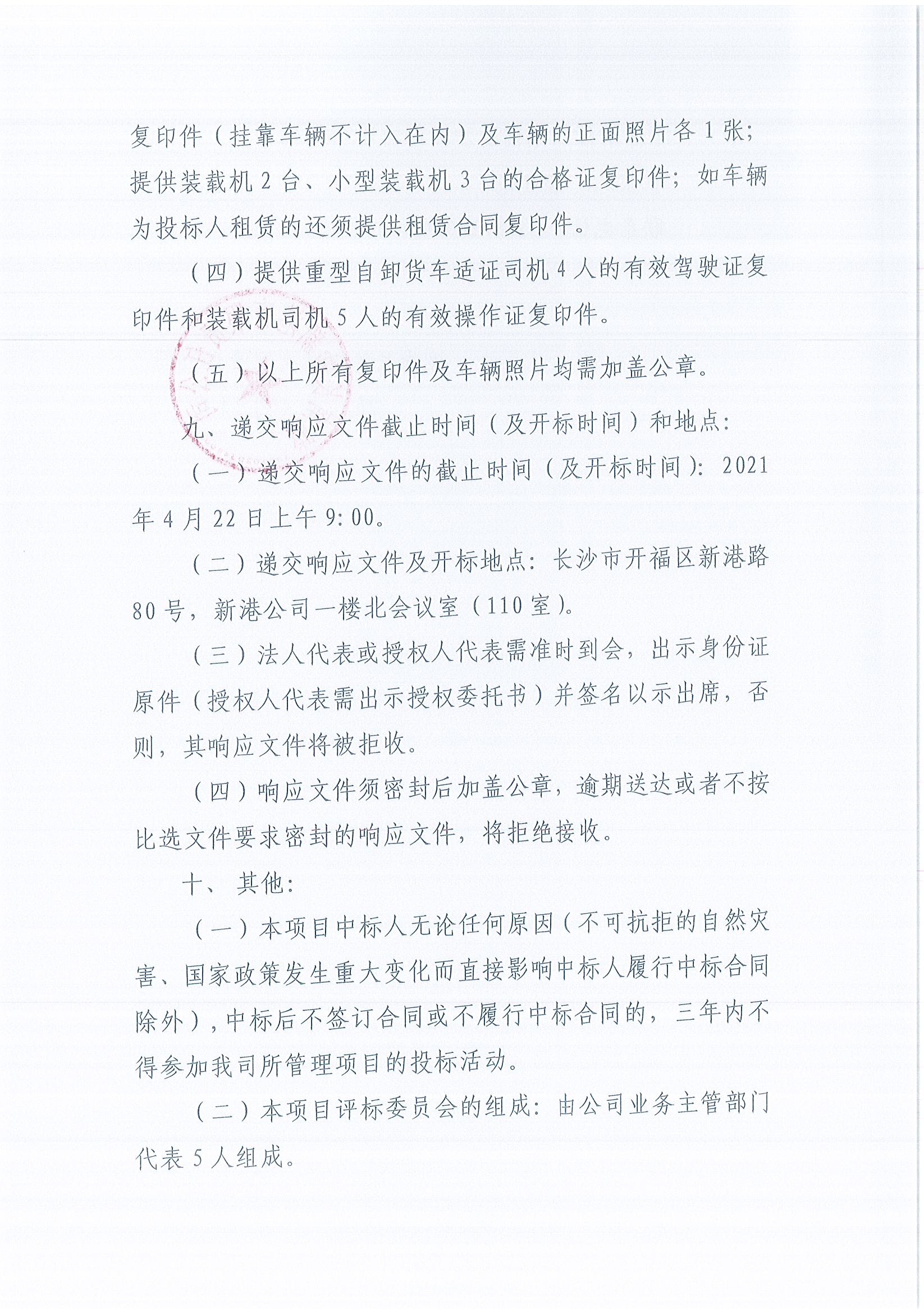 湖南長沙新港有限責任公司港區散貨裝卸作業外包項目比選邀請公告