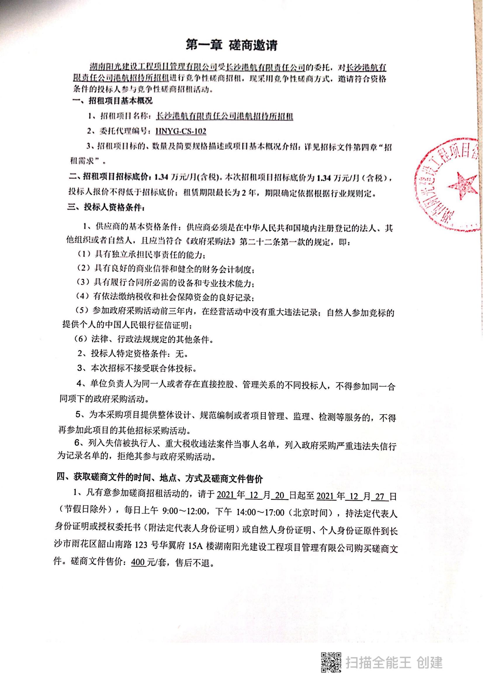 長沙港航有限責任公司招待所招租磋商公告