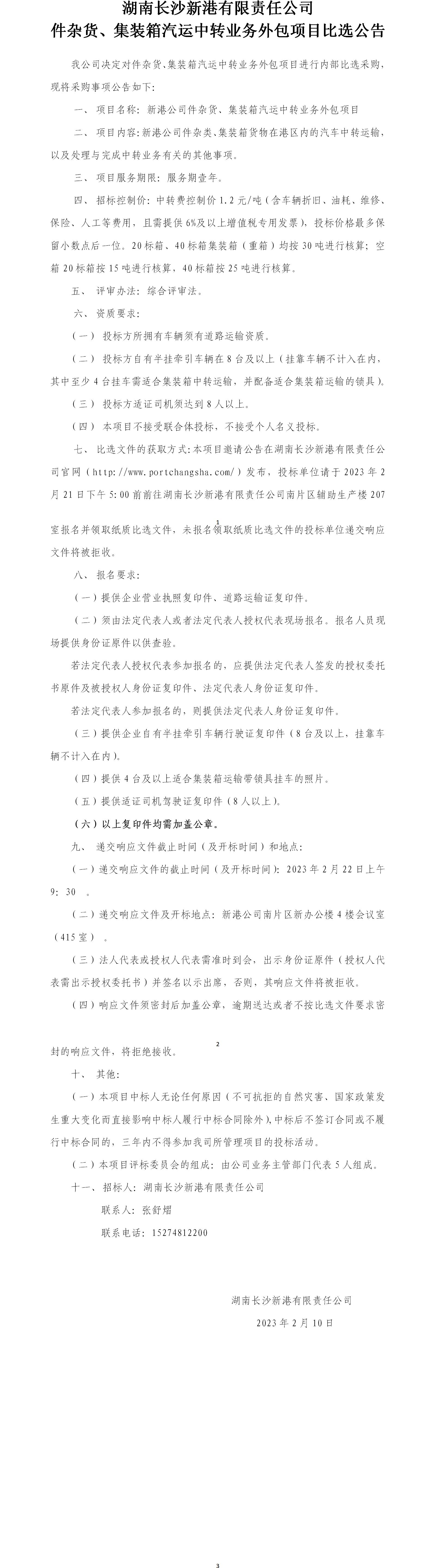 件雜貨、集裝箱汽運中轉業(yè)務外包項目比選公告