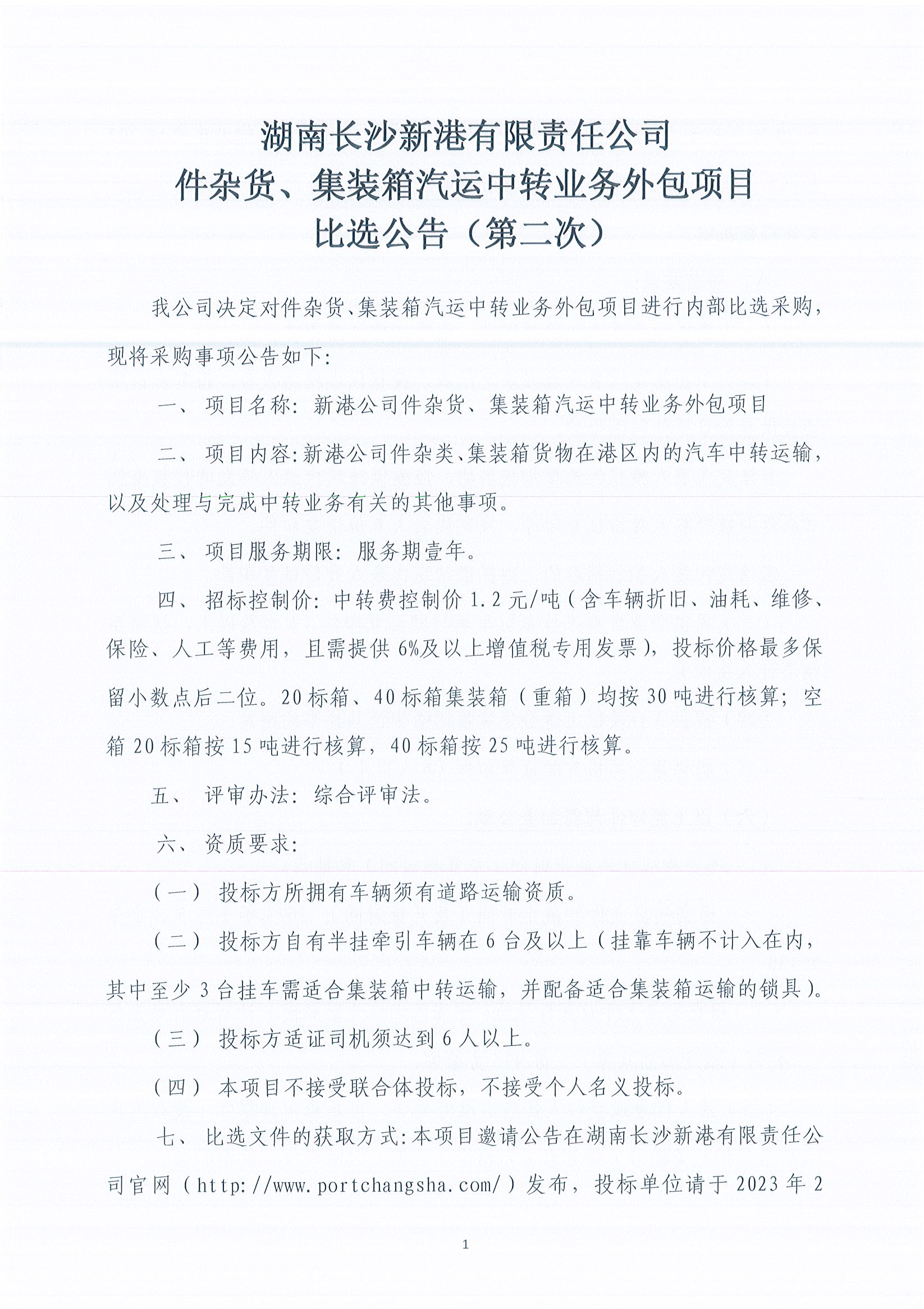 件雜貨、集裝箱汽運(yùn)中轉(zhuǎn)業(yè)務(wù)外包項(xiàng)目比選公告(第二次)