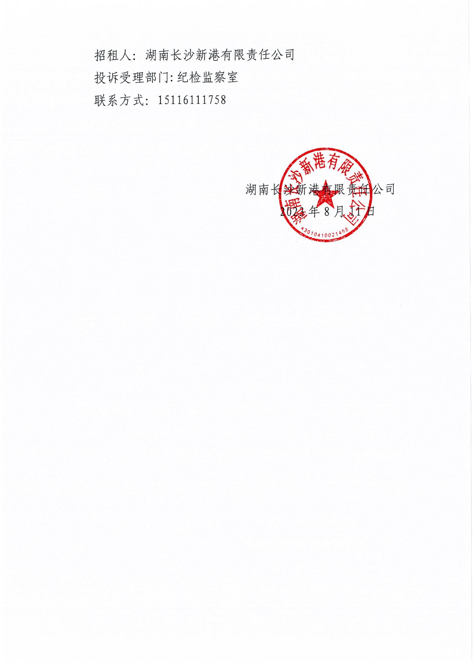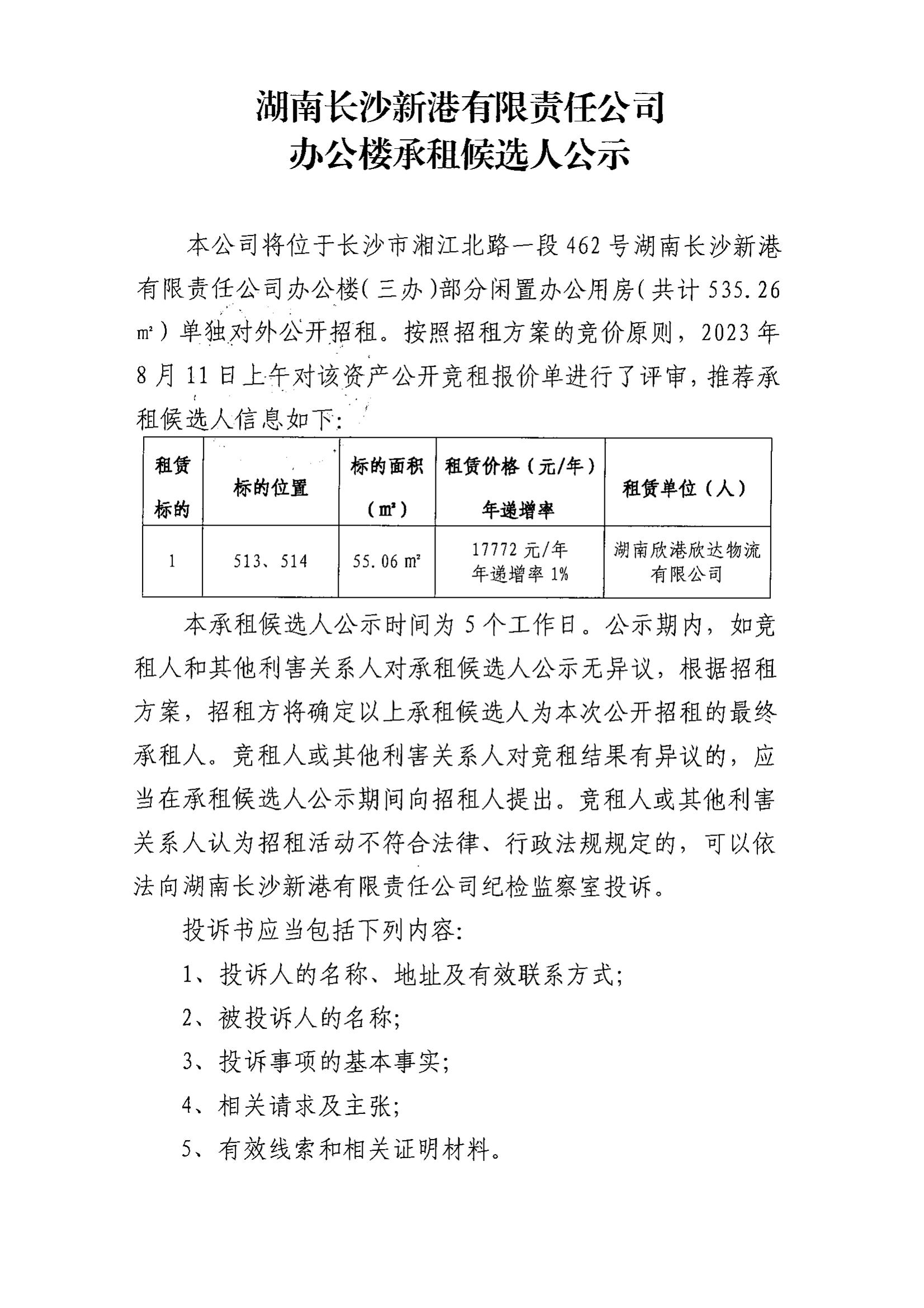 湖南長沙新港有限責任公司辦公樓承租候選人公示