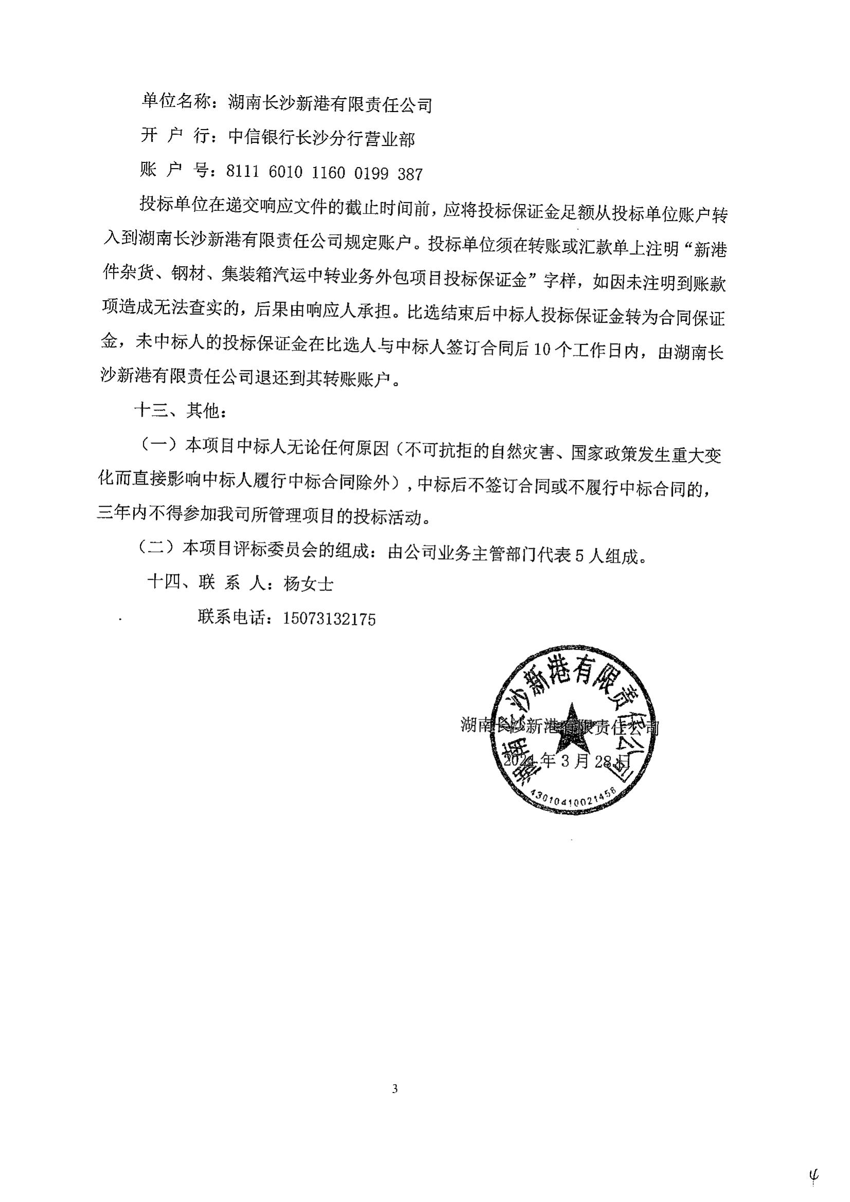 長沙新港件雜貨、鋼材、集裝箱汽運中轉業務外包項目比選公告