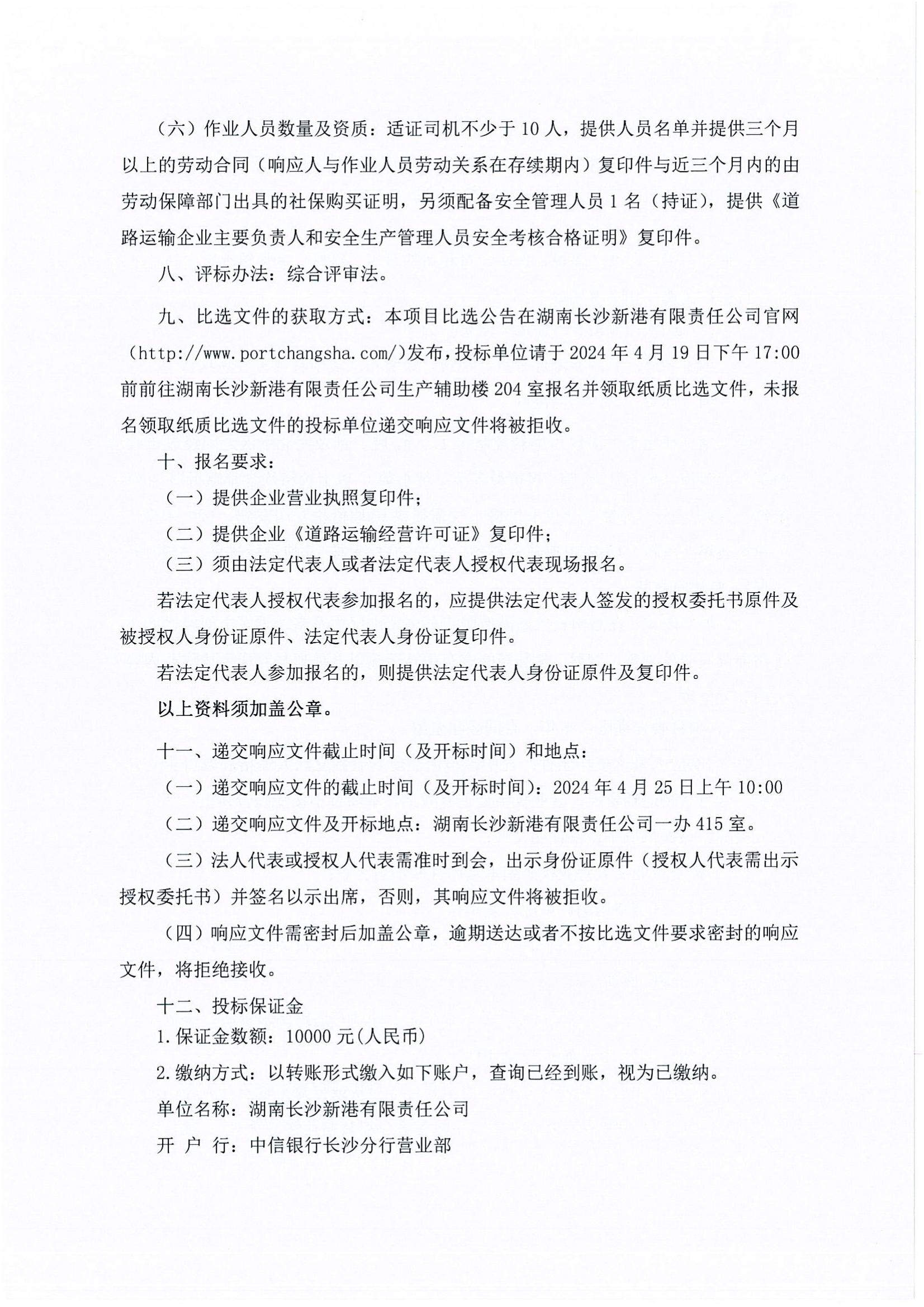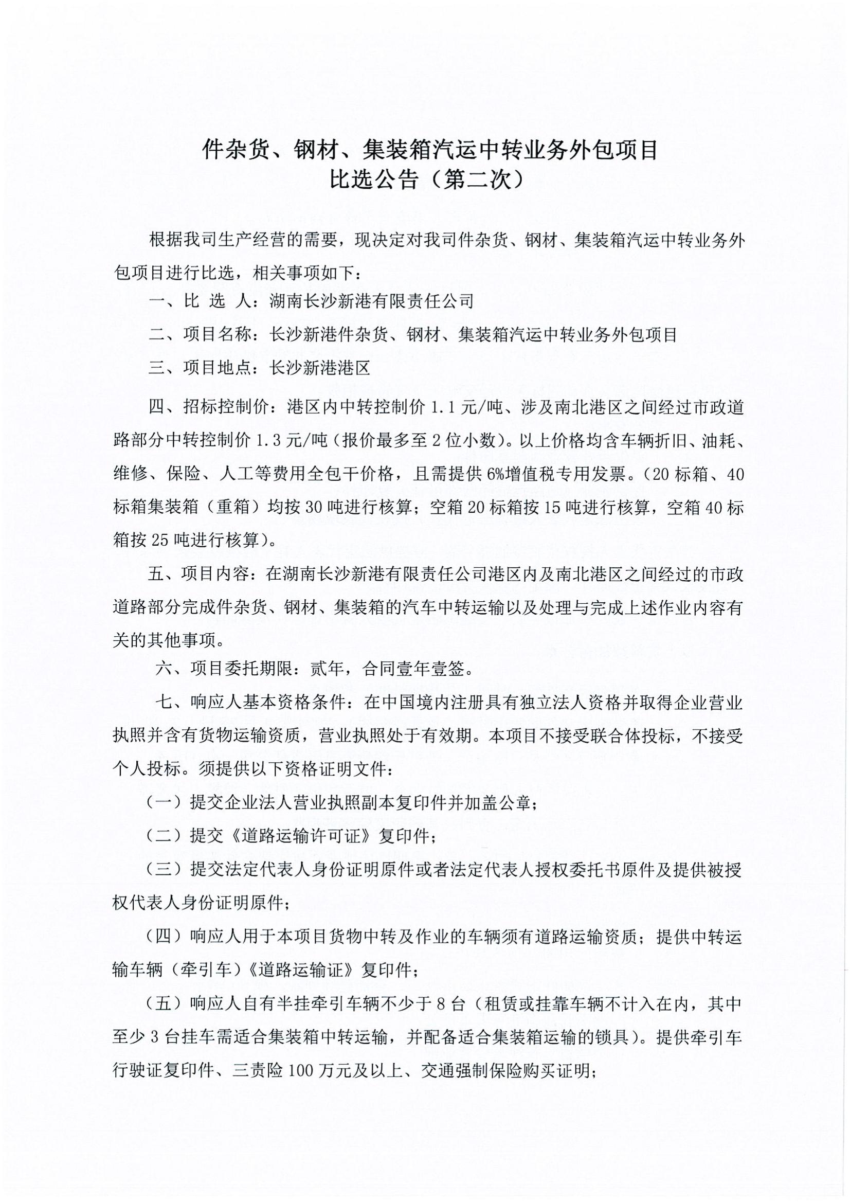 件雜貨、鋼材、集裝箱汽運中轉業務外包項目比選《比選公告(第二次)》